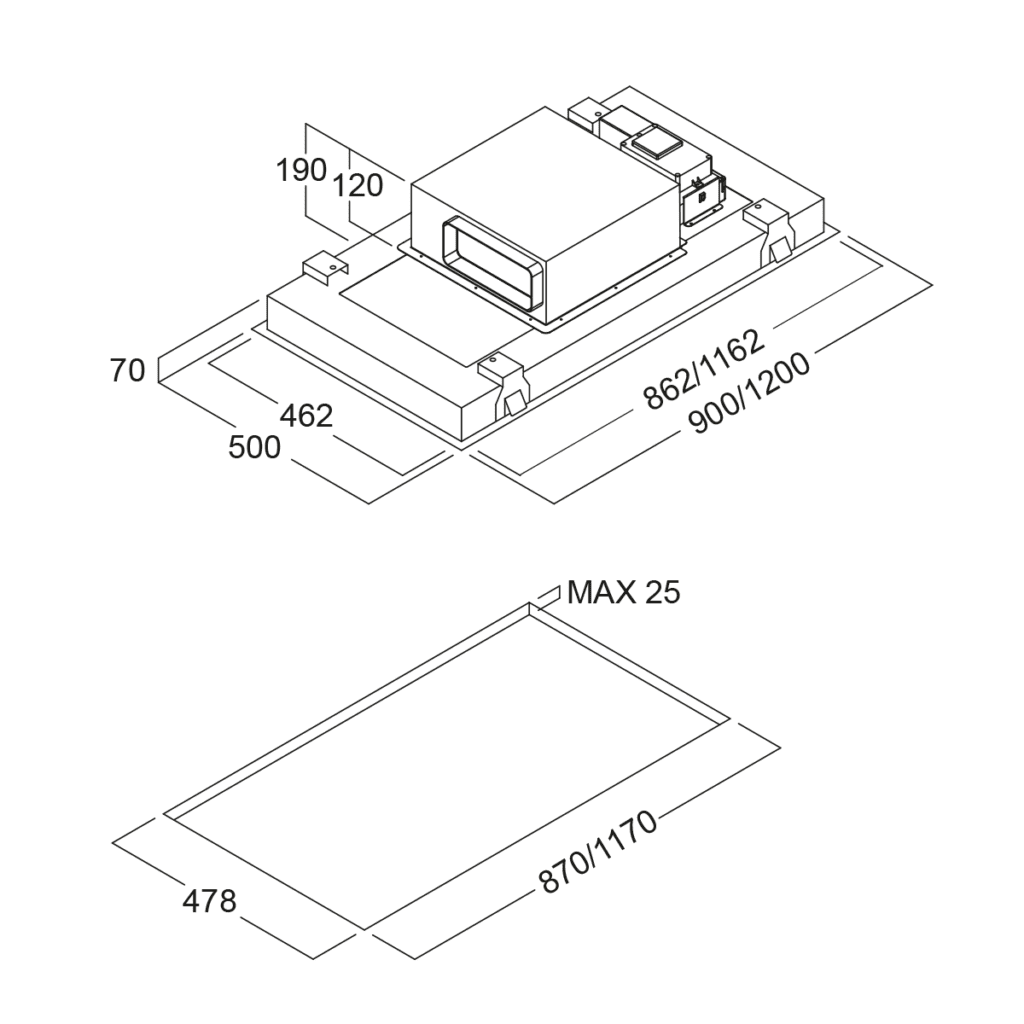 Dinamičko svjetlo, Filter alarm, Intenzivna snaga, Izmjena zraka, Obodni usis, Prilagođena veličina, Timer |