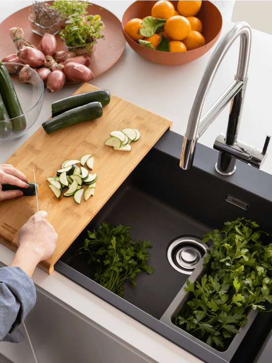 Pretvorite svoj sudoper u prekrasan radni prostor uz prilagođene daske za rezanje, rešetke za sudoper i cjedila. Franke kuhinjski dodaci su dobro osmišljeni i oduševljavaju svojom visokokvalitetnom funkcionalnošću. U takvom savršeno funkcionalnom radnom okruženju, priprema, posluživanje, pa čak i naknadno čišćenje postaju čisti užitak.