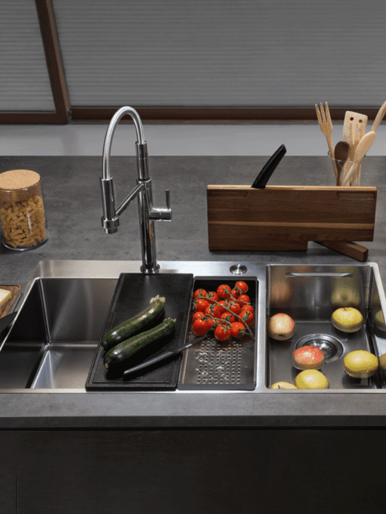 Suvremeni sudoper karakteriziraju sofisticirani detalji koji olakšavaju rad u kuhinji. Osim praktične osnovne opreme, postoji i ekskluzivni dodatni pribor, koji sudoper pretvara u višenamjensku radnu površinu. Vrhunac je inovativni Franke „PUSH-PULL“ daljinski upravljač za otvaranje/zatvaranje odvodnog ventila. Inteligentan sistem: veći komfor, manje posla.