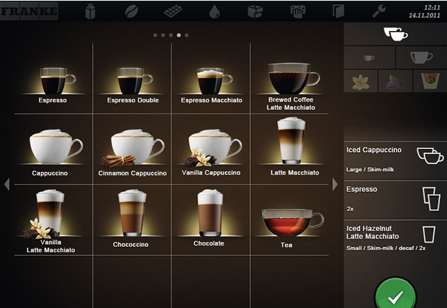 Odjel Franke Coffee Systems oduvijek pridaje veliku važnost korištenju najsuvremenije tehnologije za isporuku vrhunskih pića. Kad god, bilo gdje: u restoranu ili kafeteriji, na autocesti ili u kafiću, u supermarketu ili na benzinskoj postaji, na poslu ili u zračnoj luci: svakom gostu zajamčena je ukusna kava baš onakva kakvu on želi. Beskompromisna švicarska kvaliteta utkana je u dizajn i konstrukciju Franke profesionalnih aparata za kavu, čineći ih savršenim za odgovor na najviše zahtjeve.