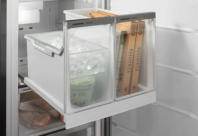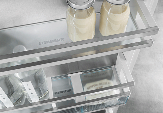 Liebherr ugradbeni hladnjak na prvi pogled ostaje neotkriven i sakriven iza fronti kuhinje, što do izražaja dovodi dizajn kuhinje. Međutim, kad se otvori, postaje jasno: iza njega se krije nešto sasvim posebno. Samostojeći uređaji - puristički i bezvremenski s jedne strane, elegantni i izuzetni s druge. Novi jezik dizajna besprijekorno se uklapa u svaki interijer. U unutrašnjosti osvajaju plemenite komponente od stakla i nehrđajućeg čelika. Novi koncept rasvjete LightTower ravnomjerno osvjetljava interijer i uz to nosi staklene ploče. Fleksibilan je, jedinstven i štedi prostor. Precizna obrada, usredotočenost na detalje i skladna kombinacija materijala, oblika i boja stvaraju potpuno estetski ukupni dojam. Na to novi koncept rasvjete nježno skreće pažnju.